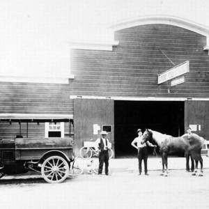 This livery stable and blacksmith shop on East Kern Street in Dinuba, CA, was behind present post office (2002). It was built by Elija Perkins and was later sold to W.A. Gregory for use as a blacksmith shop. (Photo courtesy of Dinuba Sentinel)