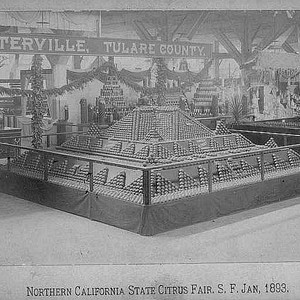 Porterville, CA, was among the communities exhibiting citrus at the 1893 Northern California Fruit Fair held in San Francisco. Growing citrus began as a serious venture in Porterville with the arrival of the railroad in 1888. (Photo courtesy of Porterville Library)