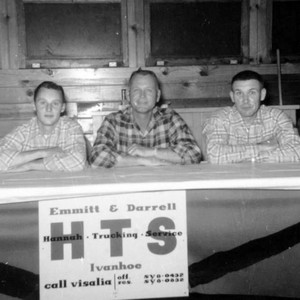 Emmitt Hannah, of Ivanhoe, CA, established Hannah Trucking Service in 1937. In this photo, taken at a company dinner at the Lion's Club in Ivanhoe, are Darrell Hannah, Emmitt Hannah and Sam Shaw.