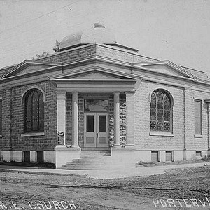 In 1910, the First Methodist Church in Porterville, CA, was located on the southeast corner of Putnam and 4th streets. (Photo courtesy of Porterville Library)