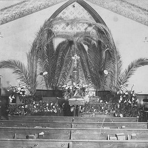 This was the interior of the Porterville, CA, First Congregational Church built in 1892, during the pastorate of Reverend John A. Milligan, from 1896 to 1906. He remained an active member and minister to those in need until his death in February, 1952. (Photo courtesy of Porterville Library)