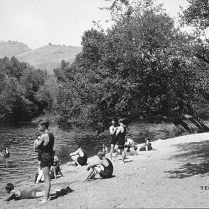 Bathers enjoy the sand and the Kaweah River at Terminus Beach, east of Woodlake, CA, in 1918. The location was just below the site of the Terminus Dam built in the late 1950s as a flood-control dam. (Photo courtesy of Pat Ropes)