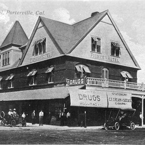 This postal card advertised the Pioneer Hotel in Porterville, CA, about 1910. Autos still were the exception rather than the rule at that time. (Photo courtesy of Carol Earl)