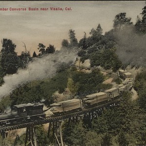 This train is hauling fresh-cut lumber from Converse Basin in the high Sierras to Visalia, CA.