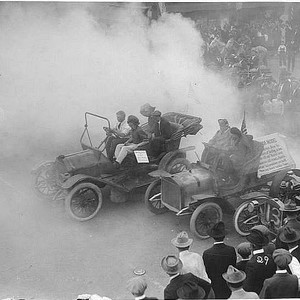 As an attraction to the 1922 Armistice Day parade in Porterville, CA, drivers conducted a street race in from Oak Street to Morton Street and then to Second Street. (Photo courtesy of Porterville Library)