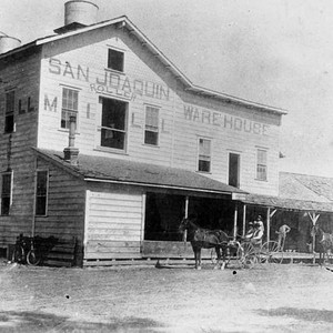 "The historical marker at the site of the San Joaquin Roller Mill, east of Visalia, CA, states"" San Joaquin Roller Mill, one of the first four roller mills in California. Located just to the north of the people's ditch, this mill, operating from 1854 to 1913, produced much of the flour used by early settlers of the valley. CLAMPUS VITUS D.S.G.G. 1855, dedicated October 28, 1978."" The site now is part of the Kaweah Oaks Preserve. The photo contributor's grandfather had a partner named Frank Emory. The grandfather quit the mill job in 1908. (Photo courtesy of Eugene Frey)"