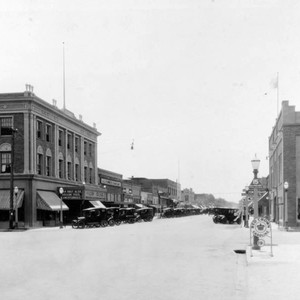 This 1920s photo was taken looking south at the corner of North L St. and Fresno St. in Dinuba, CA. At left is the Strand Theatre. The building at the right housed, on the main floor, Lushbaugh and Byers Ford dealership (later became Alta Chevrolet). On the second floor was the Masonic Temple. (Photo courtesy of Joanne Andrews)