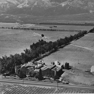 Aerial photograph of the Virginia Dare Winery, looking northwest along Haven Avenue. If you know any details from this image please contact the Rancho Cucamonga Public Library at (909) 477-2720 or reference@cityofrc.us