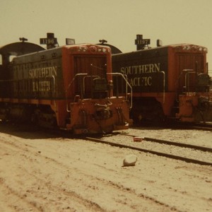 Southern Pacific Railroad Engines #1196 and #1197 are displayed in this 1981 photo taken in Exeter, CA. (Photo courtesy of Frances Kirkman)