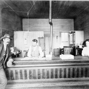 This was the interior of the Wells Fargo office in Visalia, CA, probably around 1910. The man at center is William Elmer Steuben, and the woman is his sister, Molly Steuben Burland. (Photo courtesy of Terry Slinde)