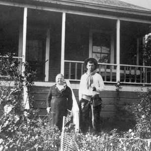 Mary Kuker Mehrten and her son, Will Mehrten, pose in front of the family home near Lemon Cove, CA. (Photo courtesy of William R. Mehrten)