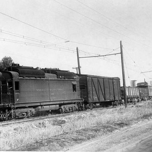 Visalia Electric Railroad's Engine #401is shown near packing houses in Exeter, CA.. Donald McFadden, pilot of the engine, is shown. (Photo courtesy of Frances Kirkman)