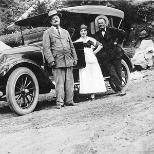 The man at left in this 1920s photo is John G. Dudley of Visalia, CA. The photo probably was taken on the road to Weston Meadows in the Sierra Nevada mountains of Tulare County, CA. (Photo courtesy of Sally Baker Dudley)