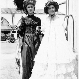 J. Amelia Weishar, left, and her friend in costume at a the parade in Visalia, CA. They are pictured on West Main Street across from the Fox Theatre, which was built in 1930. (Photo courtesy of Cecelia Esquivel)