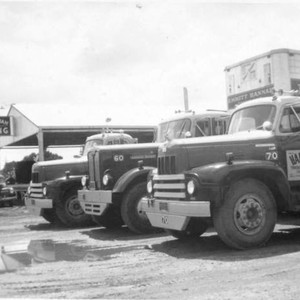 Emmitt Hannah established the Hannah Trucking Service in 1937 in Ivanhoe, CA. This photo was taken in April, 1956.