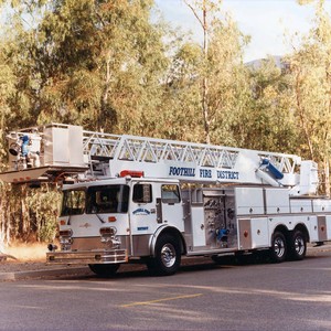 Color photograph of Truck 172 - RCFD's first truck. Foothill Fire District is inscribed on vehicle. If you know any details from this image please contact the Rancho Cucamonga Public Library at (909) 477-2720 or reference@cityofrc.us