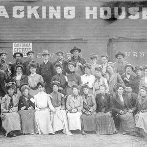 This photo taken at the Bonnie Brae Packinghouse early in the 1900s shows workers who were employed in the citrus industry at Merryman Station near Exeter, CA. (Photo courtesy of Frances Kirkman)