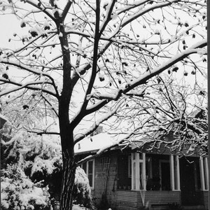 This photo of a tree and house provides evidence that snow fell and actually stayed on the ground in Visalia, CA, in January, 1999. (Photo courtesy of Carol Beers)