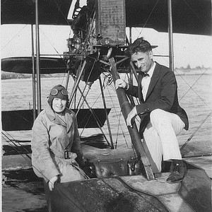 "The airplane shown here is a very early ""pusher-type"" model. No specific information was available for this photo. (Photo courtesy of Karen Ingle Flammang)"
