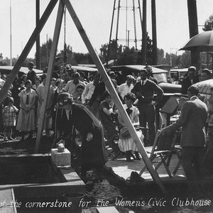 Mrs. T. A. Pogue is shown here laying the cornerstone of the Women's Civic Clubhouse in Exeter, CA. (Photo courtesy of Judith Purdey)