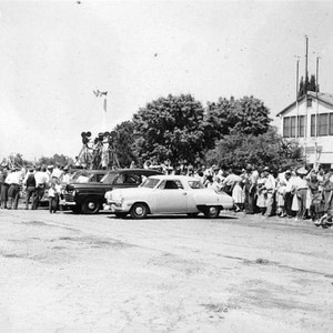Fans gather to welcome home Bob Mathias, Olympic Decathlon gold medalist in 1948, as he returns to Tulare, CA. (Photo courtesy of Sally Baker Dudley)