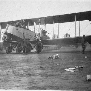 This early twin-engine biplane was demonstrated at an air show in Tulare, CA, circa 1925. (Photo courtesy of Louise Tesoriere)