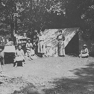 A family poses in their camp at Mountain Home, in the Sierra Nevada mountains of eastern Tulare County, CA. (Photo courtesy of Wilbur Bergen)