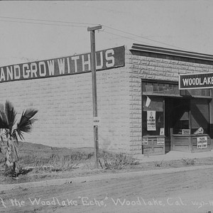 "The office of the Woodlake Echo weekly newspaper was located on Valencia Street in Woodlake, CA. The building also housed ""the telephone office,"" a switchboard operated by newspaper staff. (Photo courtesy of Pat Ropes)"