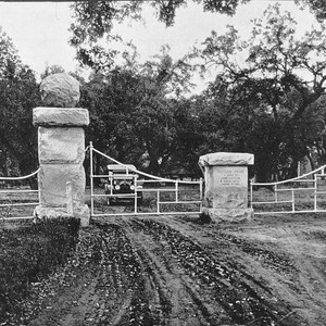 An unidentified motorist prepares to exit the gates of Cutler Park east of Visalia, CA. This photo was taken in 1926. The park was named for Judge (Dr.) John Cutler. (Photo courtesy of Nancy L. Wann)