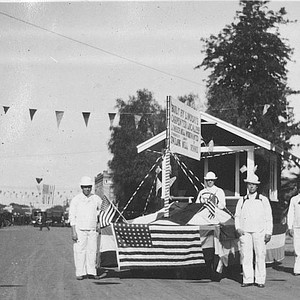 Armistice Day Parade participants in the Lindsay, CA, 1921 Armistice Day Parade prepare to enter the parade. This was the float of the Lindsay Carpenters Union. (Photo courtesy of Alma Manlove)