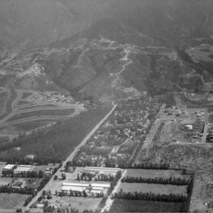 Black & white aerial photograph of Hillside Road and Hermosa Avenue. If you know any details from this image please contact the Rancho Cucamonga Public Library at (909) 477-2720 or reference@cityofrc.us