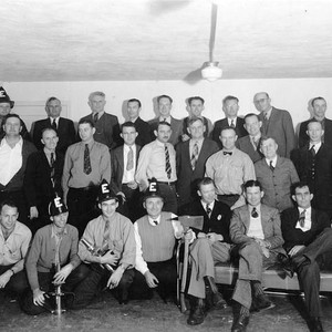 This is a photo of members of the volunteer fire department in Exeter, CA, around 1930. The scene is in the basement of the Exeter City Hall. (Photo courtesy of Frances Kirkman)