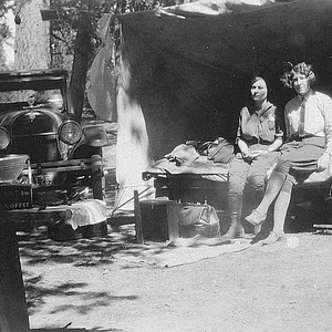Two campers pose for the camera at this Sequoia National Park campsite in the 1930s. (Photo courtesy of Karen Ingle Flammang)