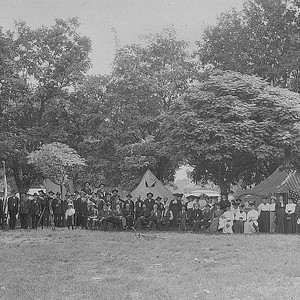 The Grand Army of the Republic, known as the G.A.R., encamped at Pavilion Park in Tulare, CA, ca 1892. Pavilion Park later was renamed Zumwalt Park. Captain Thomas Thompson was the chairman of this encampment. (Photo courtesy of Ellen Gorelick, Director, Tulare Historical Museum)