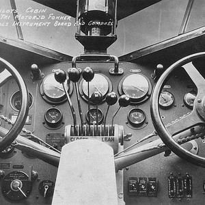 This photo shows the instrument panel of a 12-passenter Fokker tri-motor aircraft circa 1925. The plan was demonstrated at an air show in Tulare, CA. (Photo courtesy of Louise Tesoriere)