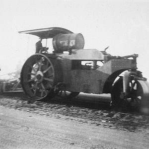 Supervising the paving of highways in Tulare County, CA, in the early 1900s is a man whose last name is thought to be Bennett. This paving machine was operating near the crossroads of State Highways 99 and 198, west of Visalia. (Photo courtesy of Larry Merriott)