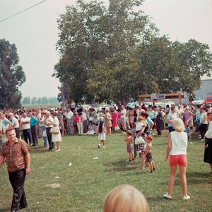 Groups of adults and children on a grassy field. If you know any details from this image please contact the Rancho Cucamonga Public Library at (909) 477-2720 or reference@cityofrc.us