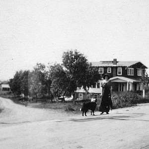 Ethel Munger and her dog Cleo pose in front of the old Terwilliger home on old State Highway 65 and Mulberry Ave. in Porterville, Calif. (Photo courtesy of Nancy Baird)
