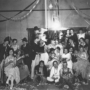 Esther Culver hosted this cabaret party, where all the boys are dressed up like girls, except one, and the girls wore guys' clothing. This was in Lindsay, CA, in 1920. (Photo courtesy of Alma Manlove)