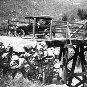This photo shows the construction of an early bridge on a road thought to lead to Sequoia National Park, above Three Rivers, CA. (Photo courtesy of Debra Harrell)