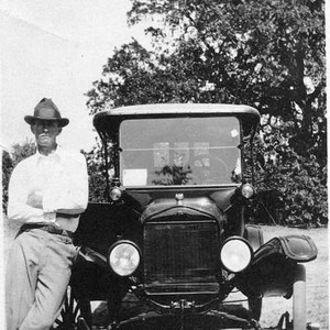 Troy Lantrip of Ivanhoe, CA, purchased a new Model T Ford at Pritchard's General Store in the town of Ivanhoe. He poses here with the 1919 or 1920 vehicle at the Cutler Ranch in the Venice Hill area. (Photo courtesy of Ray H. Lantrip)