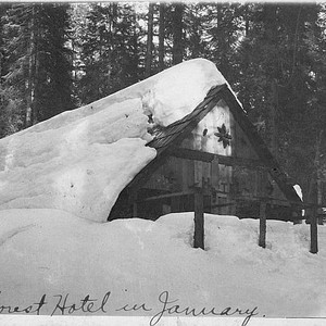 January, 1922, resulted in this photo of the hotel in Giant Forest Village, Sequoia National Park, Tulare County, CA. (Photo courtesy of Alma Manlove)