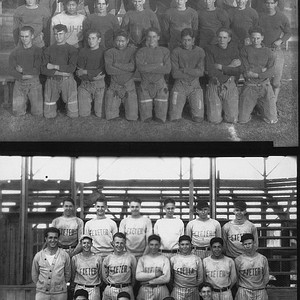 These photos show the football (top) and baseball teams of Exeter Union High School in Exeter, CA, in the 1920s. (Photo courtesy of Delora Buckman)