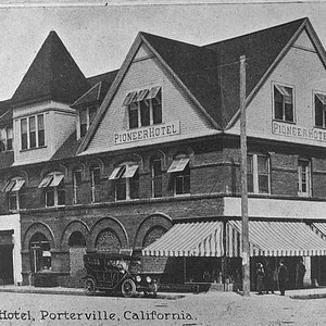 The Pioneer Hotel in Porterville, CA, is shown as it appeared ca 1920. (Photo courtesy of Porterville Library)