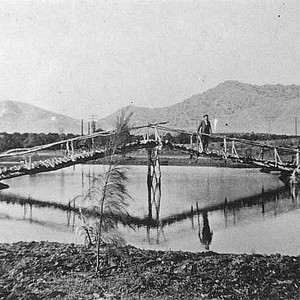 Murry Park was first known as Burlsank Park and in the 1890s it had a foot bridge across to the island that is still there in 2002. It had rowboats for public amusement. (Photo courtesy of Porterville Library)