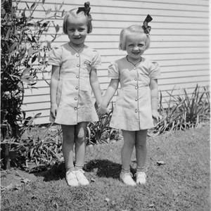This photo shows sisters Joyce and Susan Betterton in front of the home of Zane and Anna Steuben at 811 S. Locust Street in Visalia, CA. The picture was taken April 27, 1941. (Photo courtesy of Terry Slinde)