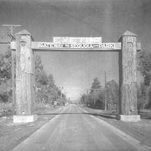 In the 1920s, headed north up State Highway 65, this welcome to the city of Exeter, CA, could be seen spanning the highway's lanes. (Photo courtesy of Delora Buckman)