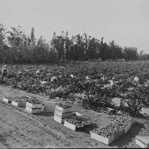 Photograph of grapes collected and drying in a field at the Virginia Dare Winery. If you know any details from this image please contact the Rancho Cucamonga Public Library at (909) 477-2720 or reference@cityofrc.us
