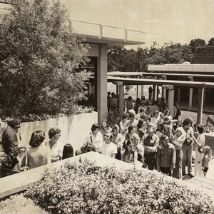 Registration lines, West Valley College, Saratoga, Campus Center patio