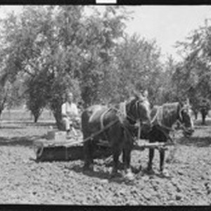 Image / [Man on horse-drawn contraption in field. Johan Hagemeyer?] [negative]